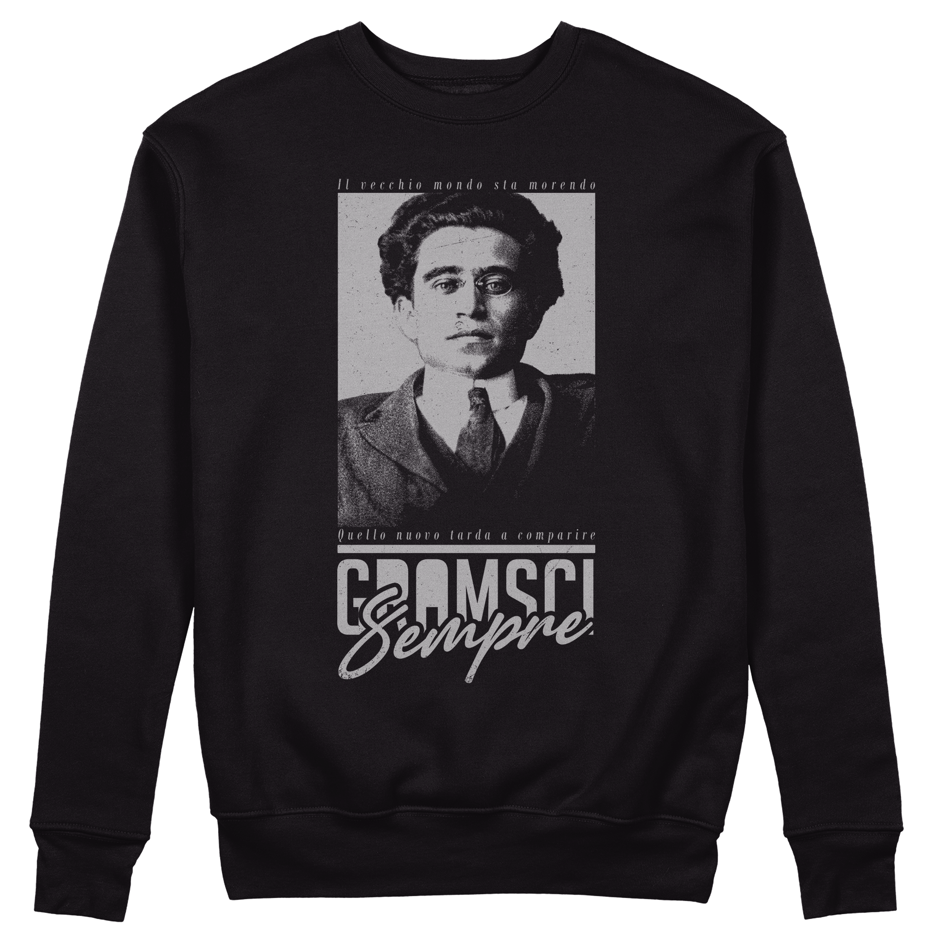 FELPA GIROCOLLO GRAMSCI il vecchio mondo sta morendo quello nuovo tarda a comparire Nera #chooseurcolor