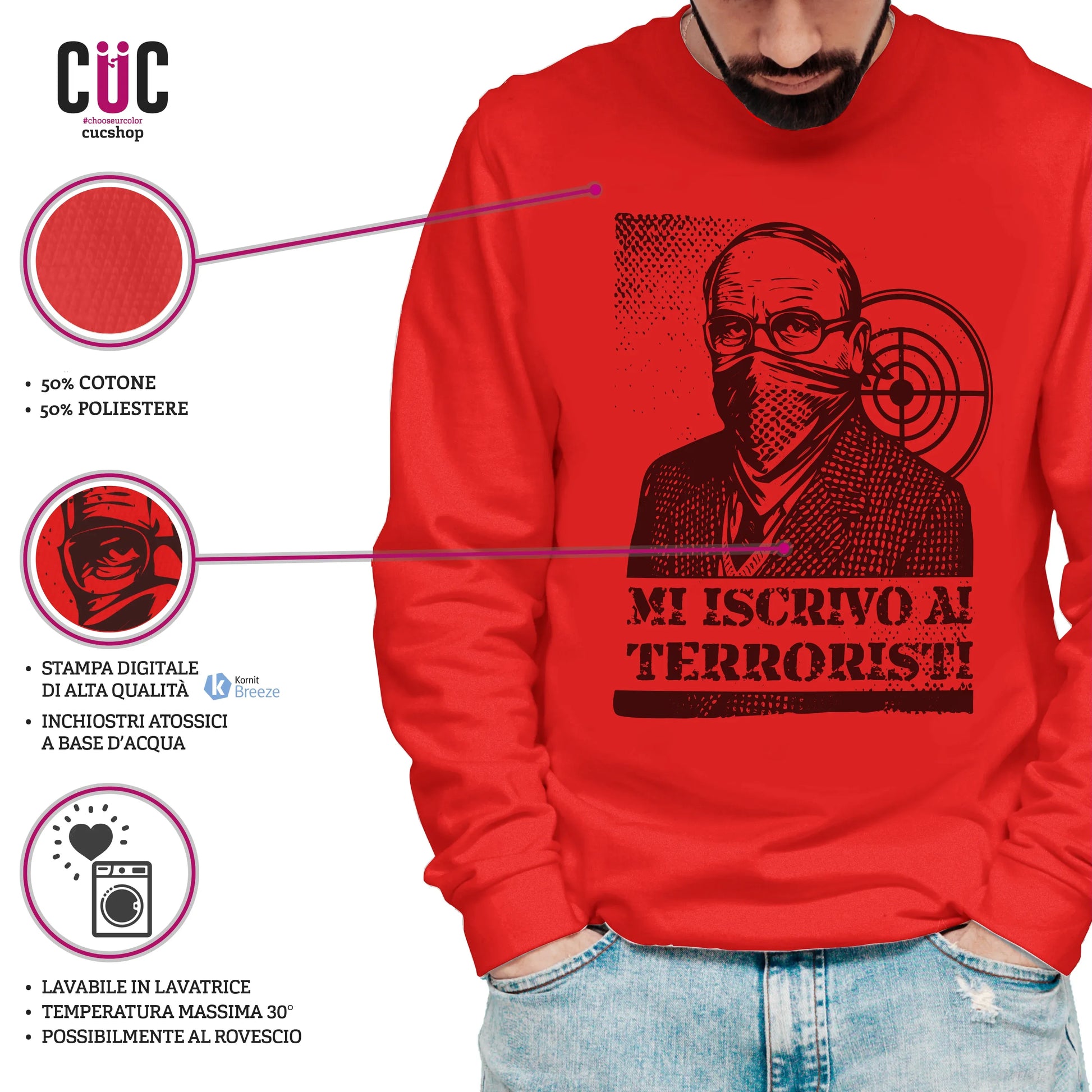 CUC GIROCOLLO MI ISCRIVO AI TERRORISTI - Unisex - PERSONAGGI FAMOSI - scherzo telefonico - Magnotta - La lavatrice - #chooseurcolor